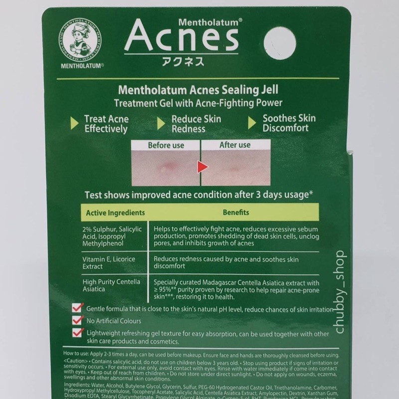 Ingredients acnes sealing gel. Containing 25 w w Sulfur treatment for acne. Moreover its the most trusted anti-acne brand among the Japanese but it is not that known and famous in India. Fights acne with trio-combination of effective ingredients- IMP Salicylic acid and Sulfur.